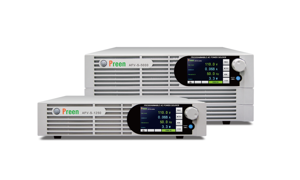 AFV-S 系列可編程交流電源可提供穩(wěn)定且低失真的電源輸出,輸出電壓- 0-310V 、輸出頻率40~500Hz。 AFV-S 具有觸控螢?zāi)慌c飛梭旋鈕,內(nèi)建20個(gè)記憶組,可提供4個(gè)快捷記憶組輸出,其中一組可彈性選擇,面板為5吋彩色觸控屏幕, 提供完整的量測(cè)讀數(shù)顯示。
